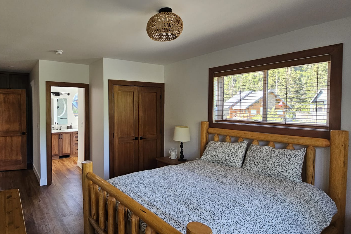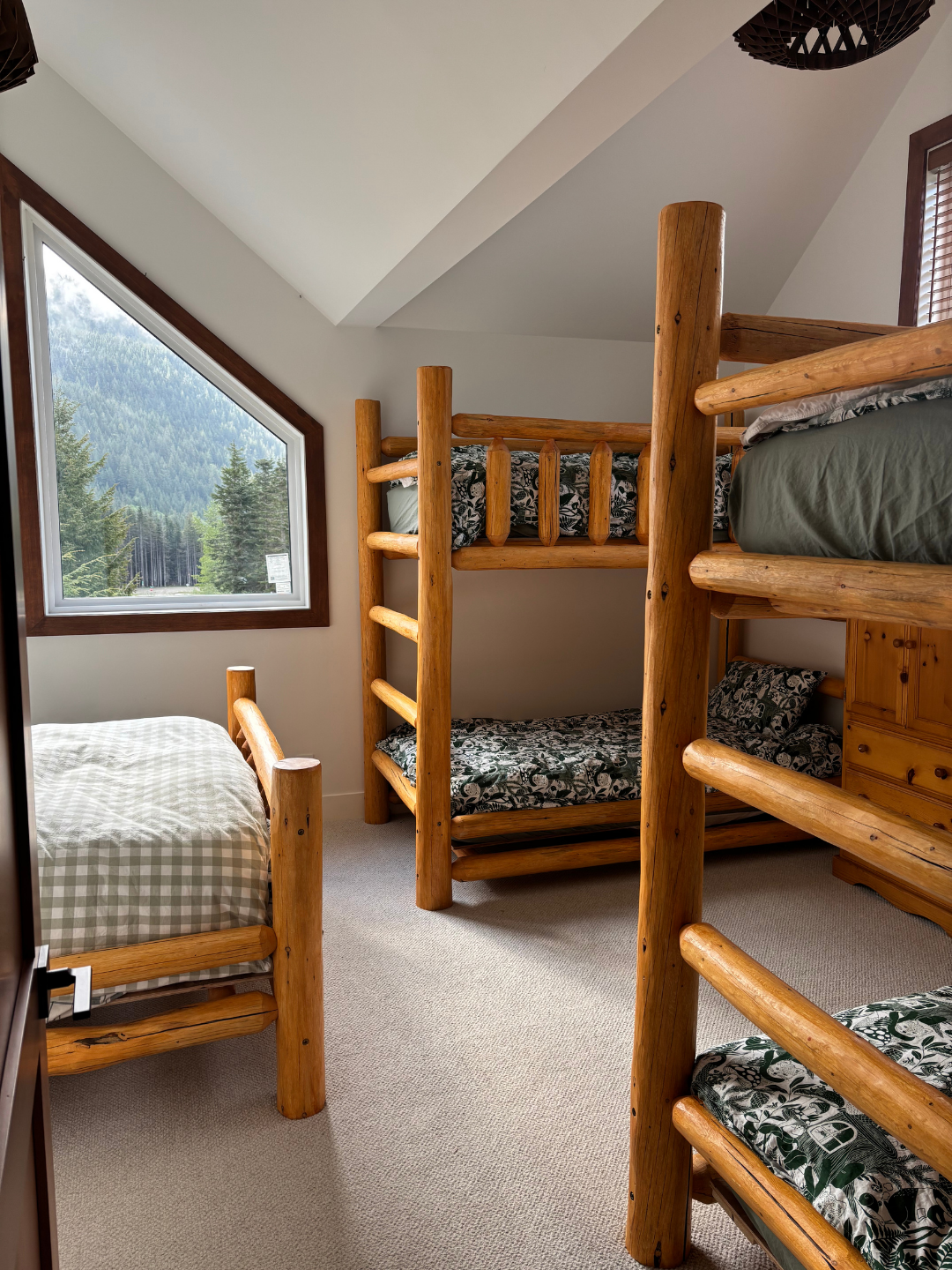 Unwind by the fireplace after a day of adventure. Retreat to four spacious, inviting bedrooms and a cozy loft with stunning forest and panoramic mountain views.